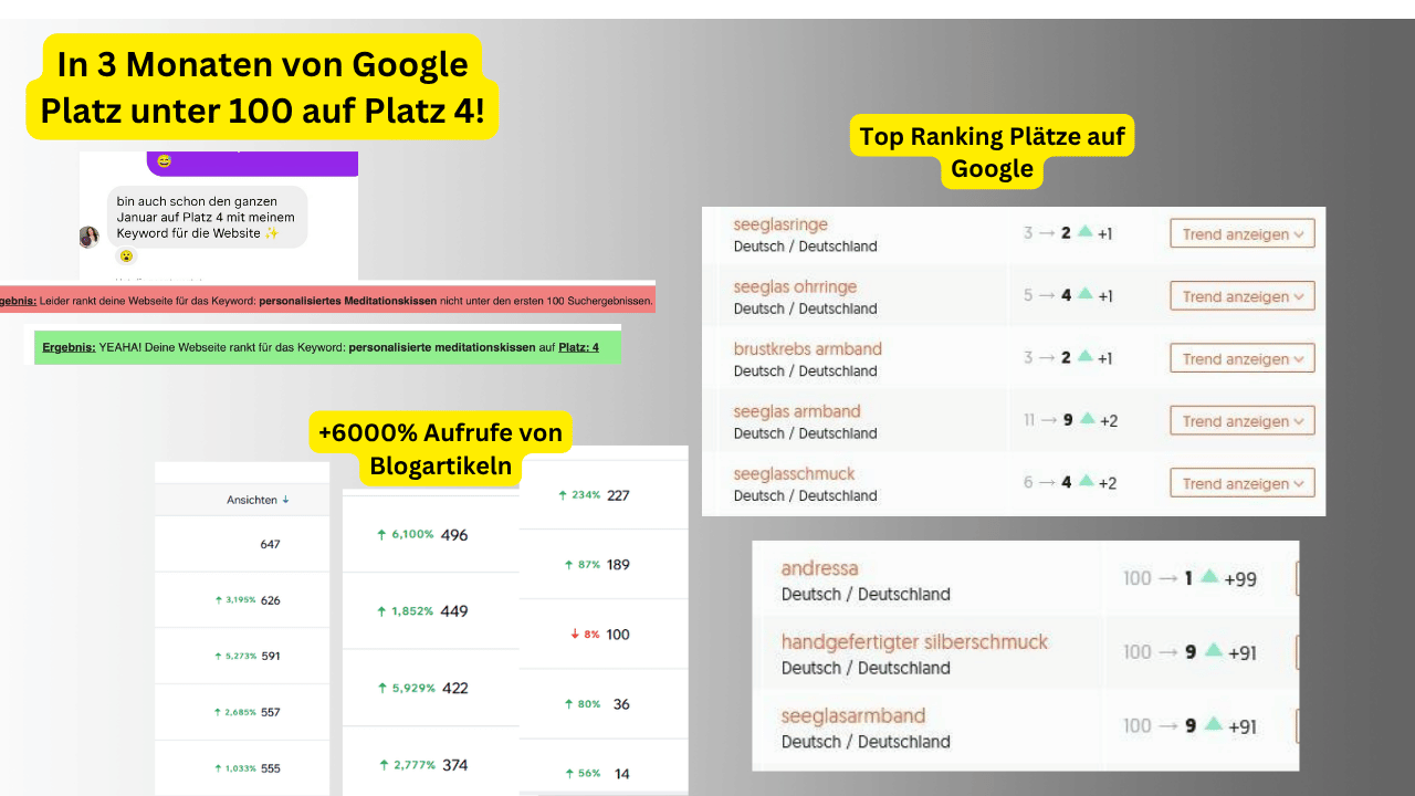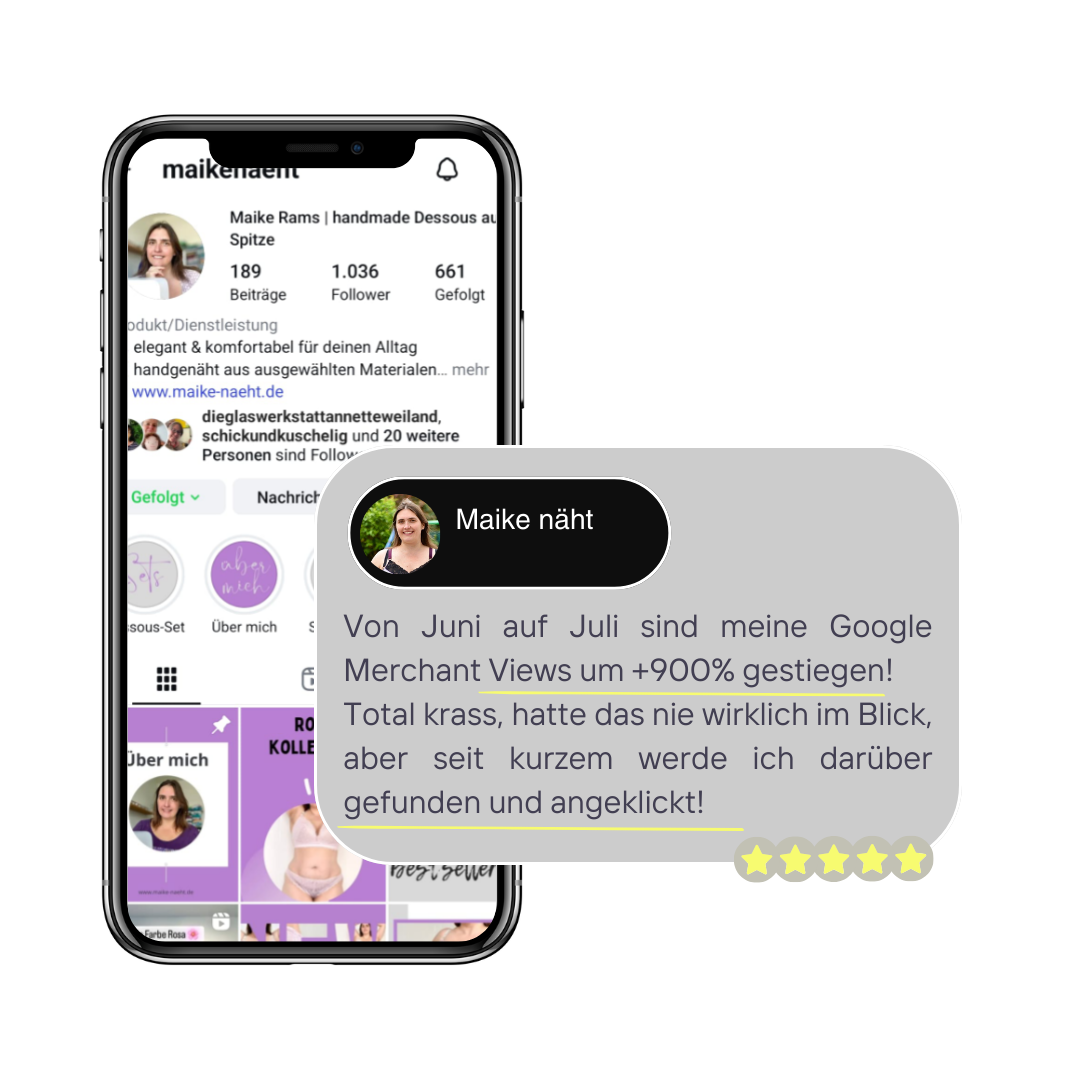 "Ich werde endlich gesehen. Mein Shop hat +375% mehr Aufrufe als früher. Total krass. Hätte ich nicht gedacht!"