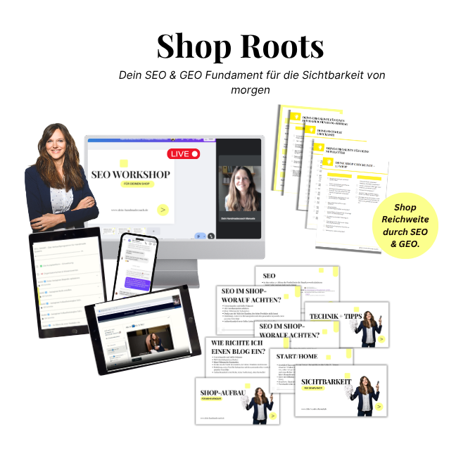 Shop Roots ist Dein einfacher strategischer Fahrplan, um Deinen Shop von „vielleicht gesehen“ zu „garantiert gefunden“ zu bringen.