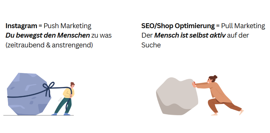 Weil jeder der in Google etwas sucht, selbst aktiv ist. Wenn Du jetzt Google durch SEO dazu bringst, dass der suchende Deine Produkte, Deinen Shop ausgespielt bekommt ist das viel entspannter und automatisierter für Dich.