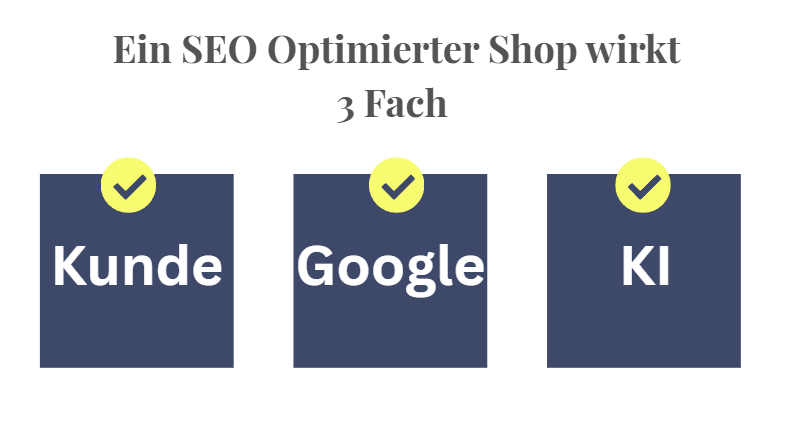 Wir nutzen die Kraft von moderner SEO die wenige Zeit kostet. Nehmen parallel die KI-Suche (GEO) mit auf, damit Dein Shop die Antwort auf die Fragen Deiner Kunden ist und so nicht nur Google für Dich verkauft, sondern auch die KI wie z.B. ChatGPT Deine Produkte empfiehlt.